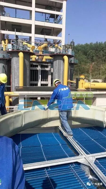 此次450m3/h*2台组合高温冷却塔,采用的是PP高温填料,1.5m的填料高度,降温效果达到55°(90°-35°)温差!确保了该企业的生产不受到影响。